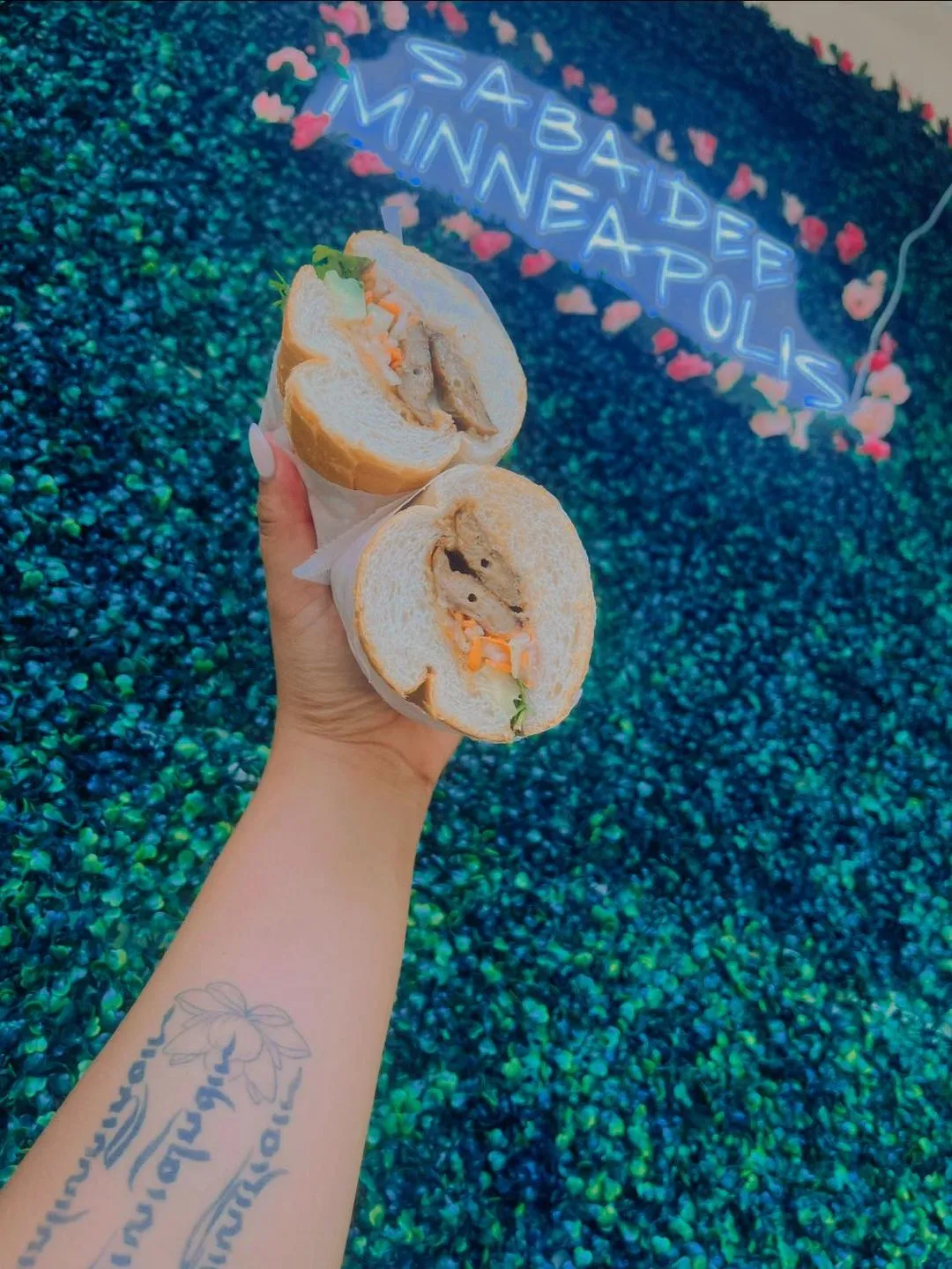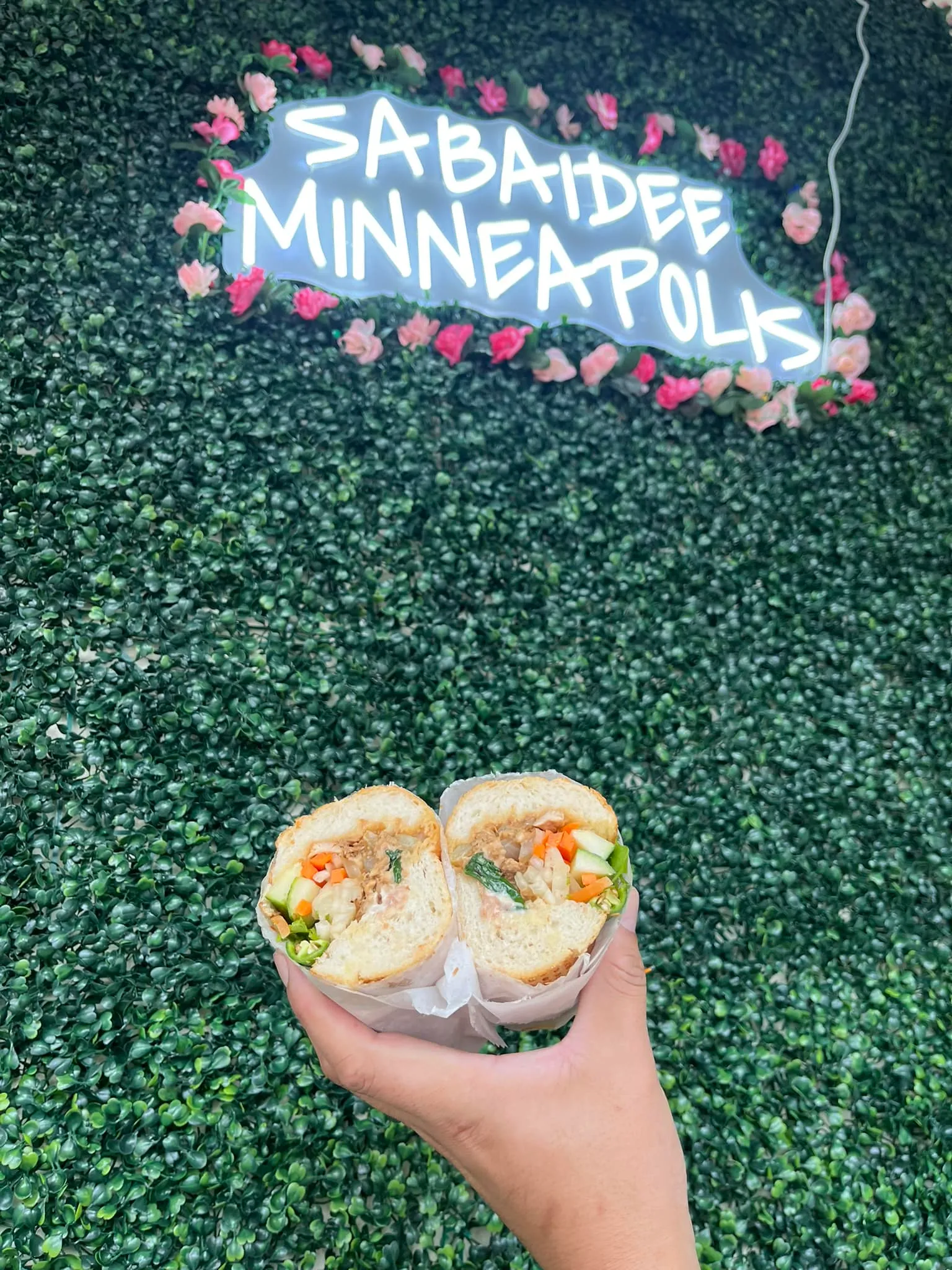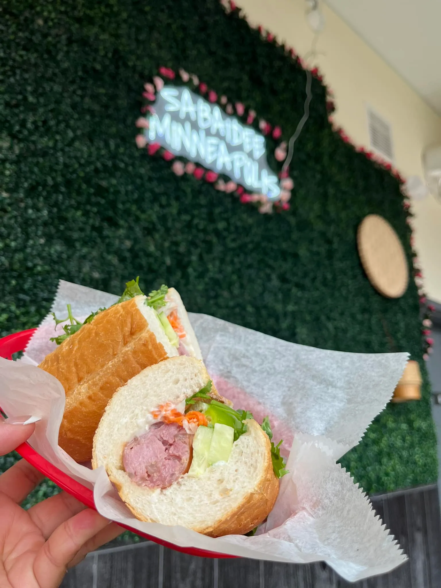 Pork meatloaf, pate, mayo, pickled carrots and daikon, cucumbers, jalapeños, topped with cilantro in a flaky croissant.